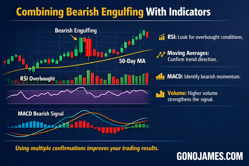 You can increase accuracy by combining the Bearish Engulfing pattern with technical indicators: