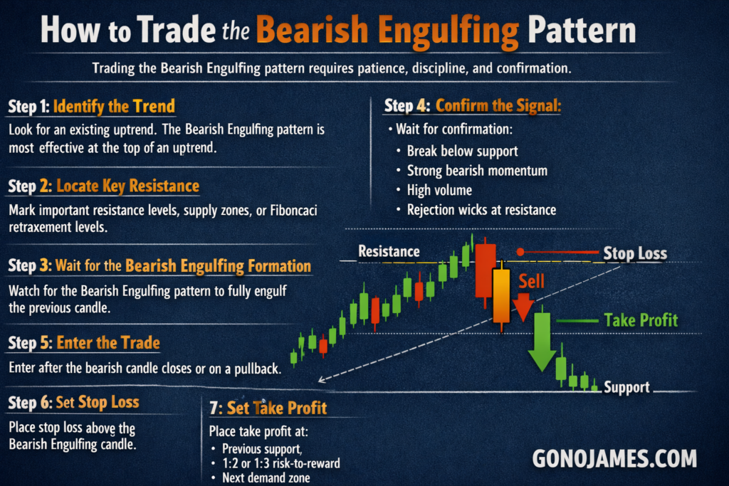 Trading the Bearish Engulfing pattern requires patience, discipline, and confirmation.