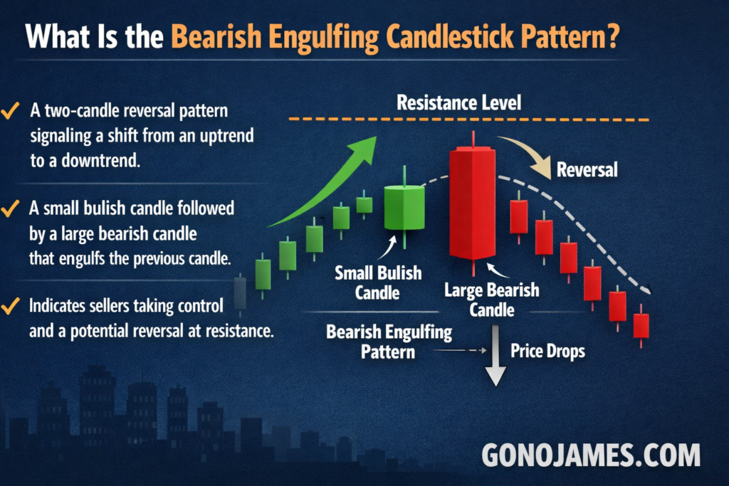 The Bearish Engulfing candlestick pattern is one of the most powerful and reliable reversal patterns in Forex trading. Many professional traders rely on this pattern to identify potential market tops and enter high-probability sell trades. If you want to improve your price action trading skills and spot strong reversal signals, mastering the Bearish Engulfing pattern is essential.
