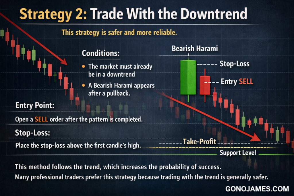 There are many ways to trade using the Bearish Harami pattern. Below are two simple but powerful strategies that traders commonly use.