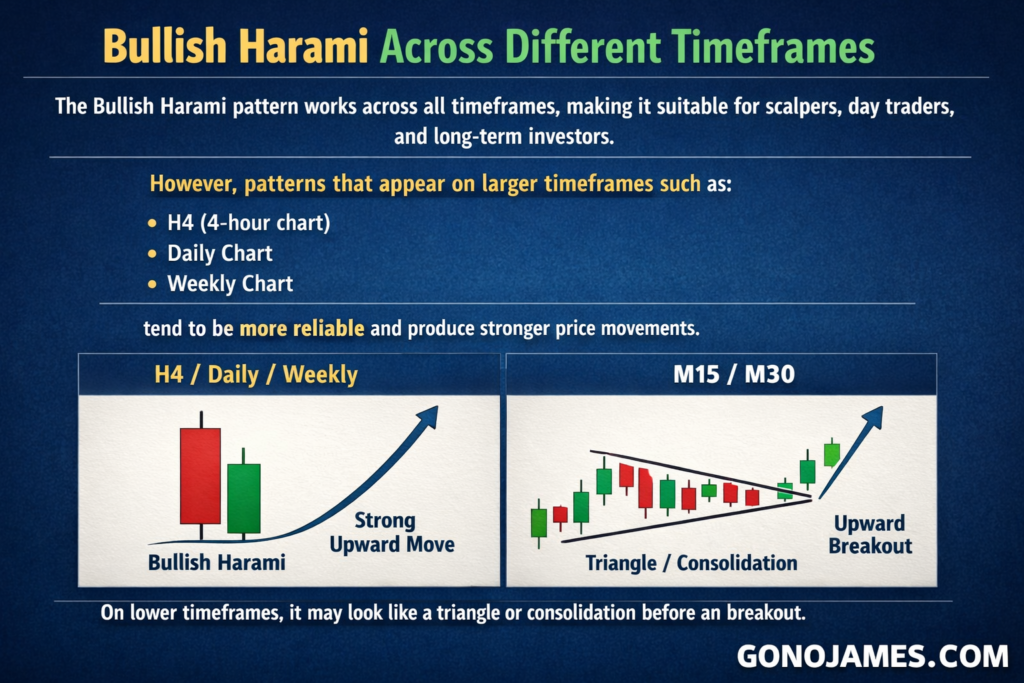 The Bullish Harami pattern works across all timeframes, making it suitable for scalpers, day traders, and long-term investors.