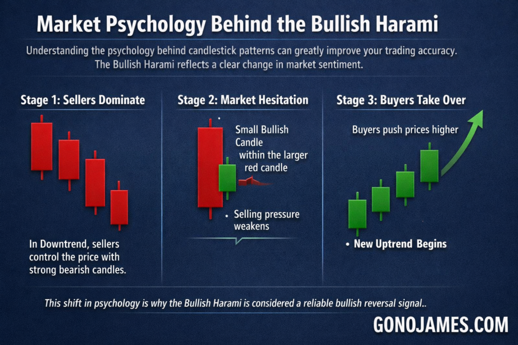 Understanding the psychology behind candlestick patterns can greatly improve your trading accuracy. The Bullish Harami reflects a clear change in market sentiment.