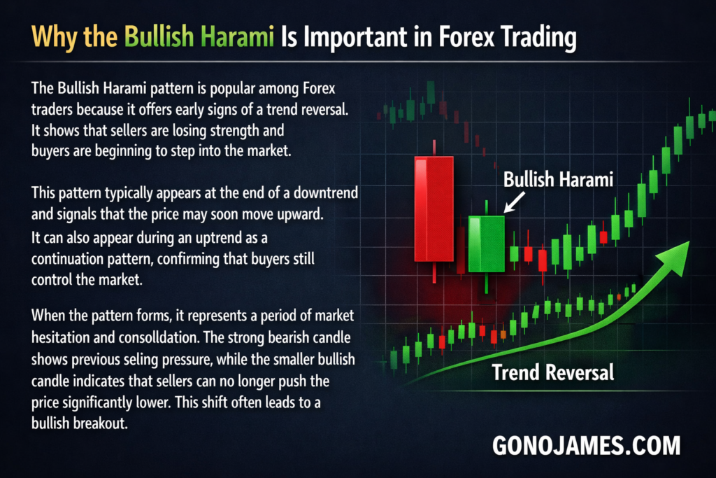 The Bullish Harami pattern is popular among Forex traders because it offers early signs of a trend reversal. It shows that sellers are losing strength and buyers are beginning to step into the market.