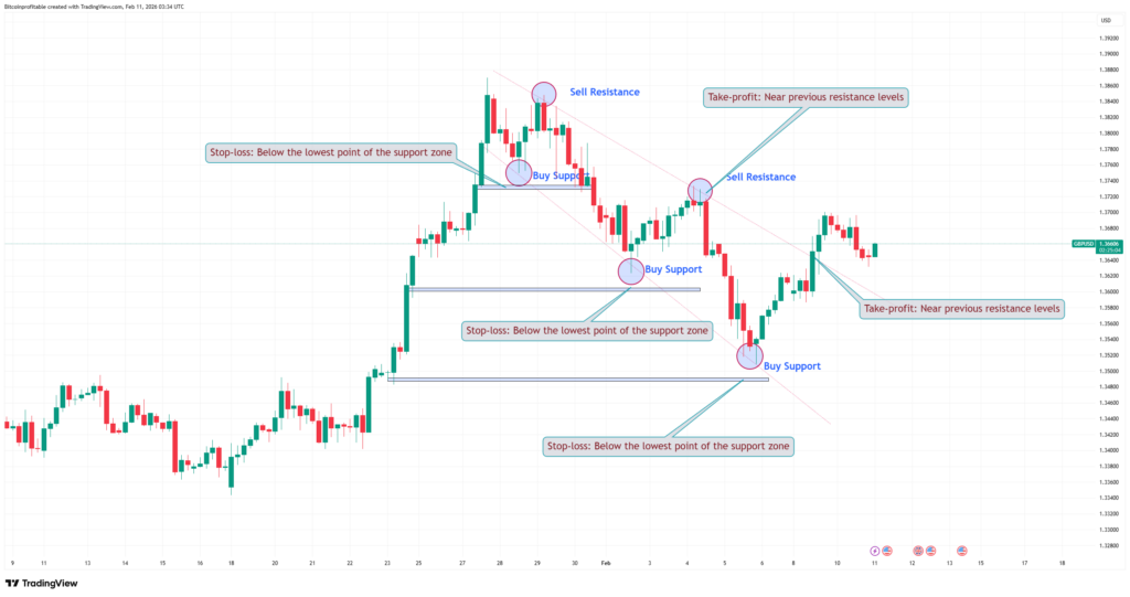 These levels are not random. They are created by market psychology and trader behavior. When price reaches resistance, many traders start selling because they believe the price is too high. When price reaches support, many traders start buying because they believe the price is undervalued.