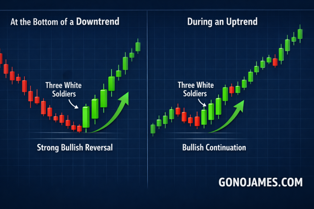 The Three White Soldiers candlestick pattern is one of the most powerful bullish signals in Forex trading. It represents strong buying pressure and often marks the beginning of a significant uptrend or the continuation of bullish momentum.