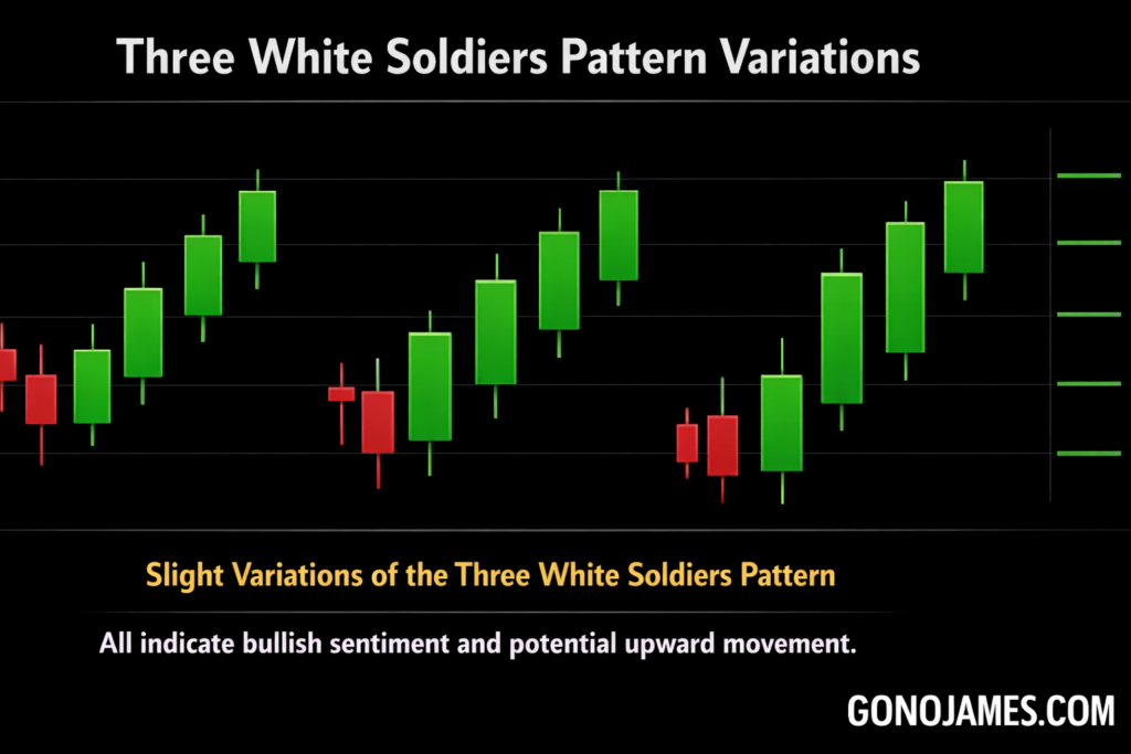 All variations of the pattern generally indicate bullish sentiment and potential upward movement. The stronger and more consistent the candles, the more reliable the signal becomes.