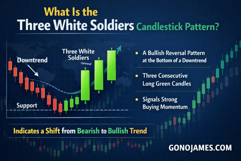 In the world of Forex trading, understanding price action is one of the most powerful ways to identify high-probability trading opportunities. Professional traders often rely on candlestick patterns to read market sentiment and predict future price movement. Among the most reliable bullish reversal signals is the Three White Soldiers candlestick pattern.