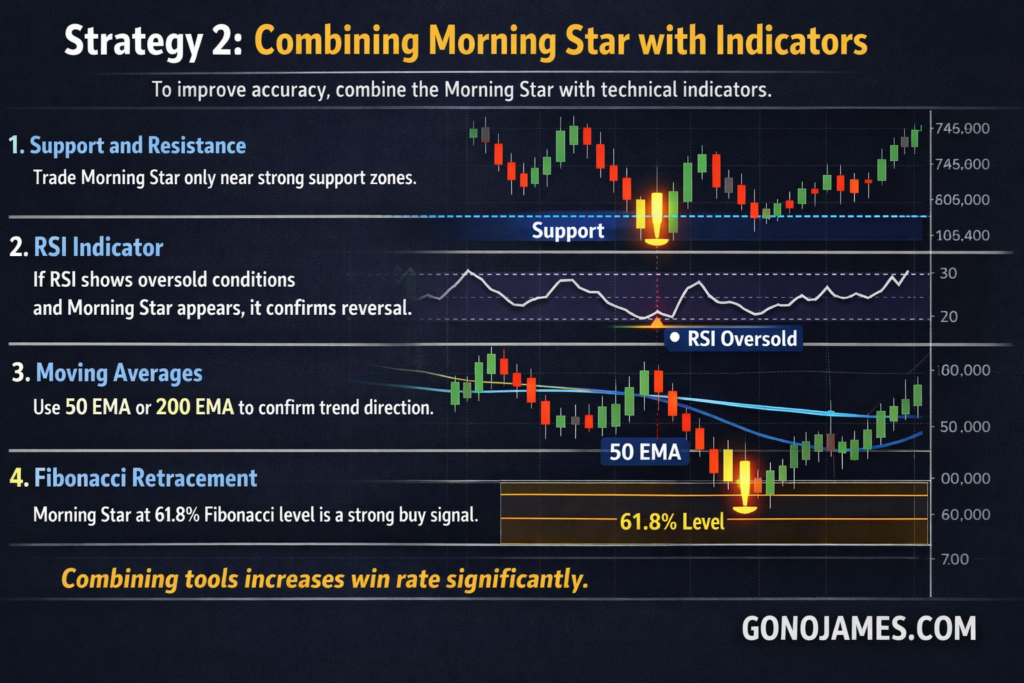 If RSI shows oversold conditions and Morning Star appears, it confirms reversal.