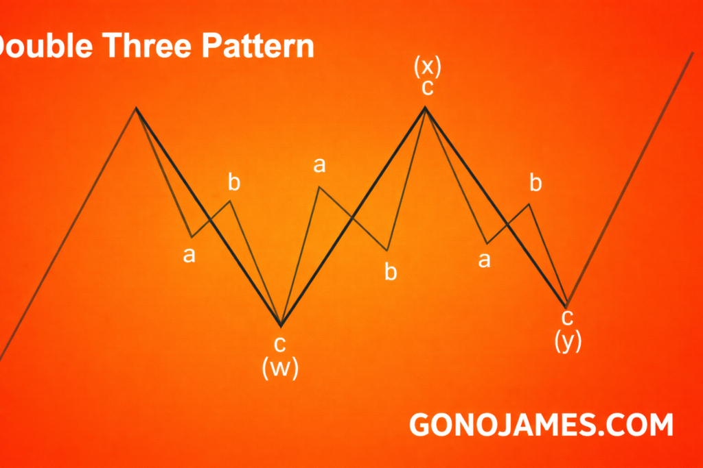 The Double Three pattern follows a W-X-Y structure: